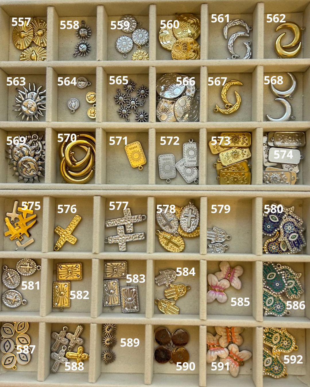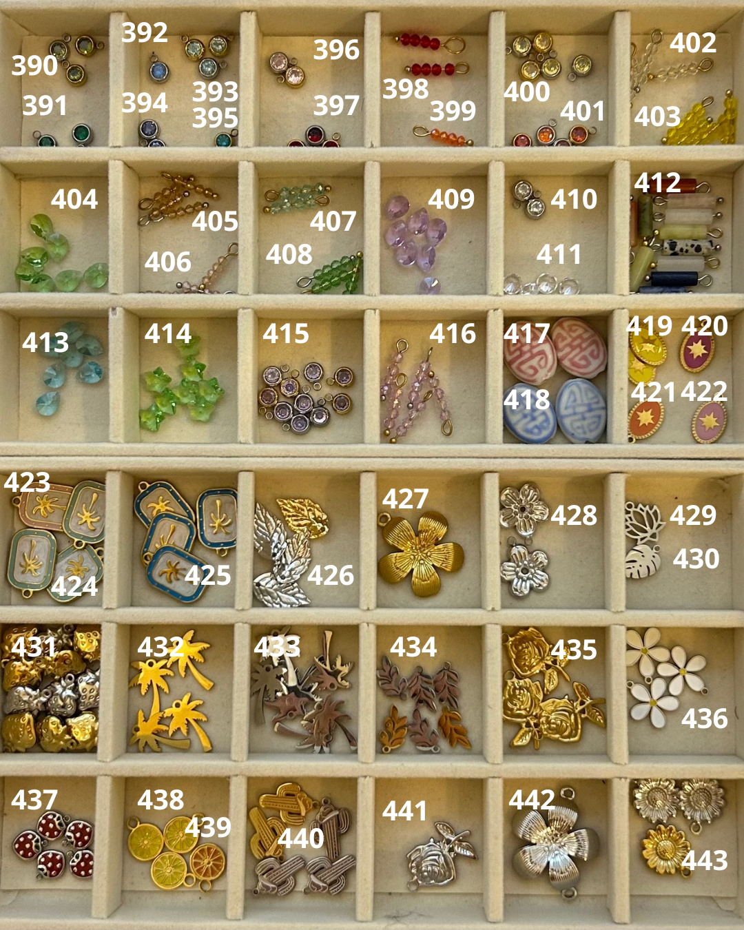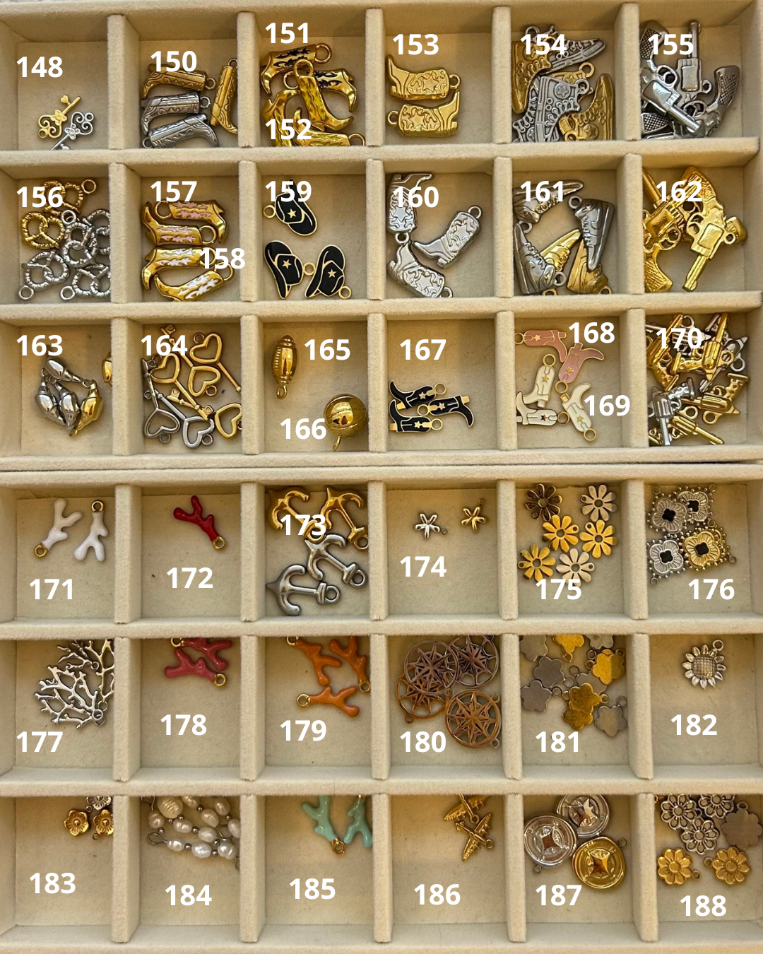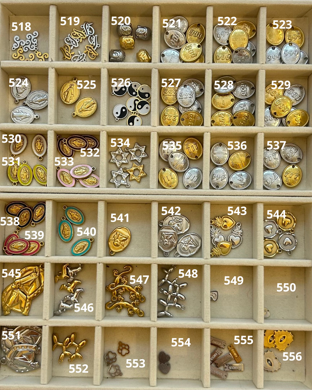 Les breloques sélectionnées seront disposées de haut en bas sur la chaîne. Veuillez indiquer si la breloque choisi est de coloris or ou argent.